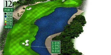 In this way, the player is left with a third shot to a comfortable green and a short chip (less than 100 yards) to the flag, avoiding the large lake on the right side.