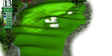 It is very important to concentrate on reaching the slippery medium-sized green, defended with a bunker to the front and left.