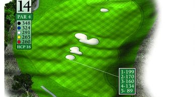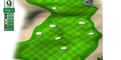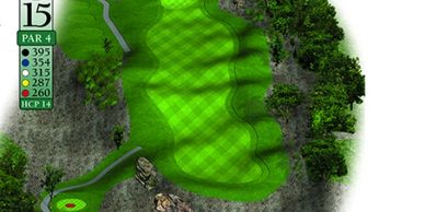 A nice straight Par 4 where your driver should carry you over a wide rocky area dotted with bunkers.