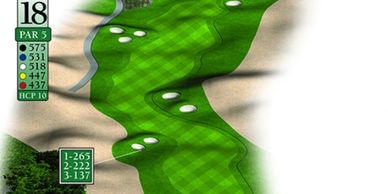 A spectacular Par 5 with a right dogleg that, at 478 yards from white tee to cup, is a formidable challenge for any player.