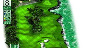 In this par 4 you will tee off surrounded by native vegetation just a few yards from the cliffs that drop off into the sea.